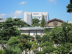 明治大学和泉キャンパスの横には築地本願寺の和田堀廟所、すなわち墓地があって、割合広い緑地帯となっている。この場所、甲州街道からは木々だけが見えるものだから、私はずうっと明治大学の敷地なんだろうと思っていたんだけれど、違ったのね。
