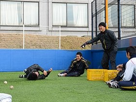 その後はキャッチボール、ティーバッティングを消化すると、フットワークを使った“ペッパー(捕球練習)”。ドラゴンズの3選手が50球をクリアしていく中、高城が41球でへたりこむと、谷繁から「それが19歳の体力かよ」との容赦なく発破がかかる。これで気合が入ったのか続くゴロでのペッパーでは足がガクガクになりながら執念で4人中唯一の100球超え。終わった頃には暫くの間ハイハイしかできないぐらい体力をすり減らしていたのだが、その口ぶりからは厳しくも充実した自主トレを過ごせていることが伺えた。