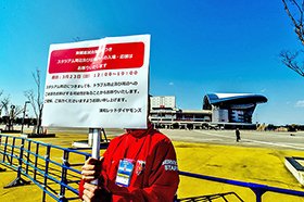 いつもならレッズのサポーターで溢れかえっている南ゲート前、浦和美園の駅からスタジアムへ続く歩道もがらんとしている。ところどころに見える人影は、制服を着た警備員と、赤いウインドブレーカーを着た係員と、暗色のスーツに身を包んだレッズのクラブスタッフのものだけだ。