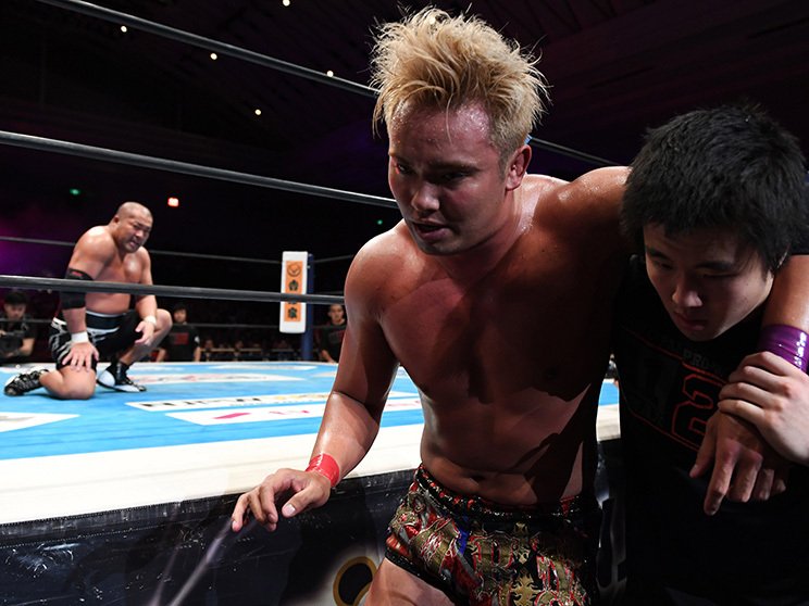 負けたオカダが抱えられて引き揚げていく……。
