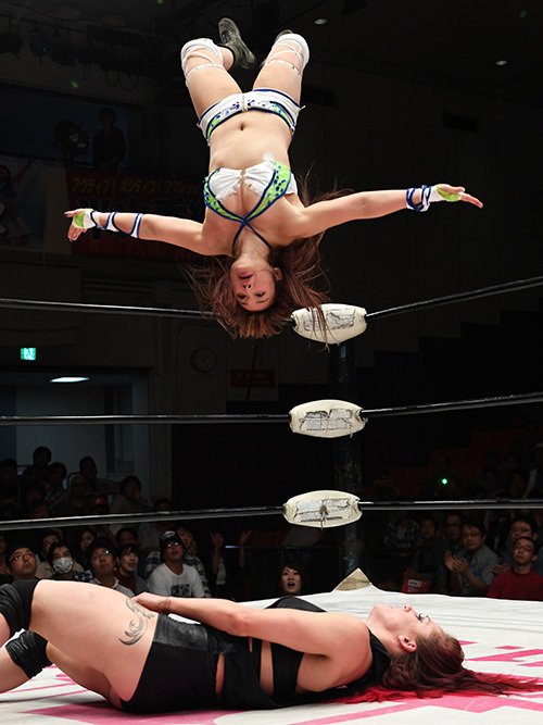 フィニッシュは「天空の逸女」のニックネームにふさわしいムーンサルトプレス。