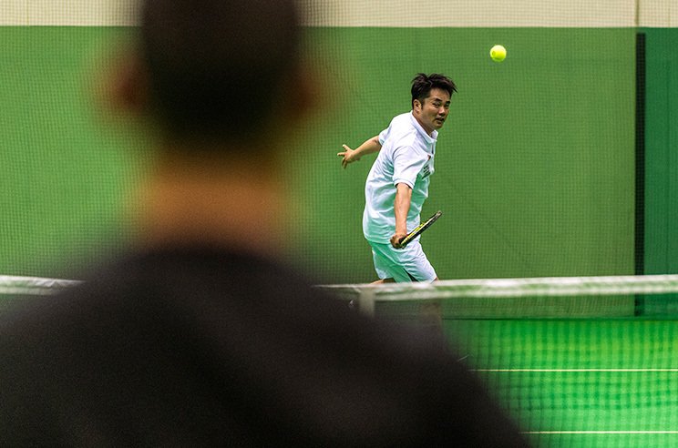 この日の練習相手は学生時代からのライバルで、現在はプロテニスコーチをしているという堀大器さん。