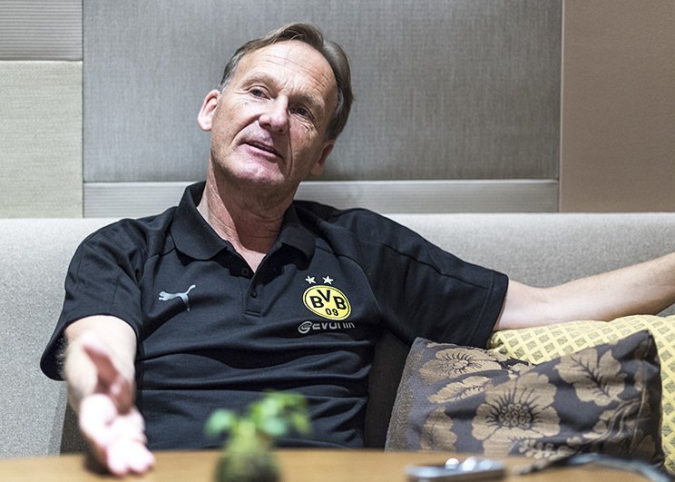 クラブのポロシャツで登場したヴァツケCEO。経営者というよりも、サッカーとドルトムントを愛する人という印象が強烈だった。