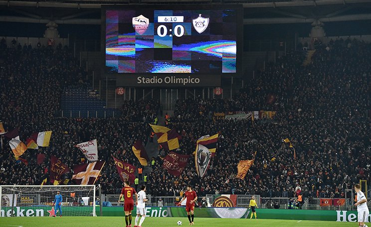 ローマのエンブレムのもと指揮を執るディフランチェスコ監督。その熱血指導はロマニスタに希望を与える。