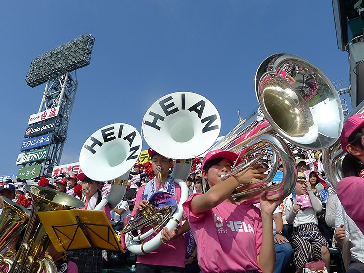 同校が接戦で制し、8強入りを決めた3回戦。試合終了後は、球場前の阪神高速道路ガード下「5号スパン」に両校吹奏楽部のバスが隣り合って待機しているのだが、すぐに出発するようスタッフに促されるため、楽器を積み込んだら即発車。両校が交流するような余裕はないのが現状だ。
