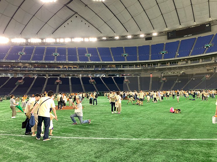 東京ドームと選手の巨大さに驚く。