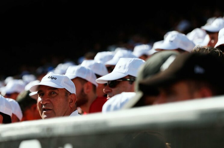 気温は30度を超える過酷なコンディション。熱中症対策として多くの観客が事前に配られた『La Liga』と記された白い帽子を被った景色は見慣れないものだった。