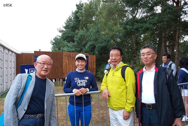 全英女子オープンに駆けつけたRSK山陽放送の桑田社長(左)。歓喜の瞬間は「人の陰になって見えなかった」そうだ。
