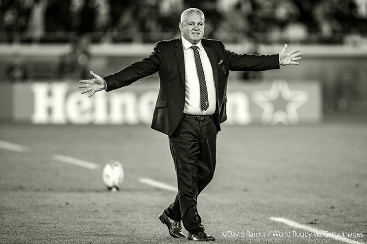 選手がウォーミングアップのためにフィールドに出て来たら、すぐに撮影の準備が必要になる。なぜなら、いつ最高のシャッターチャンスがあるかわからないからだ。この写真はまさに最高の瞬間を捉えたもので、ウェールズのヘッドコーチ、ウォーレン・ガットランドがウォームアップ(?)している写真だ。