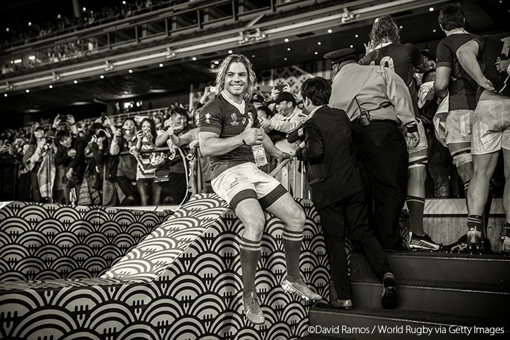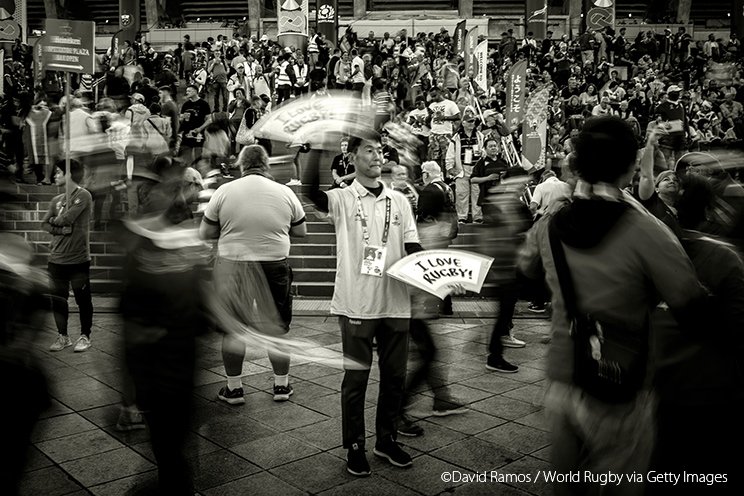 敢えてスローシャッターを使い、彼と「I LOVE RUGBY!」というメッセージを強調させてみた。最高峰の試合に向けて、盛り上がりに満ちた雰囲気も写真から伝わってくる。