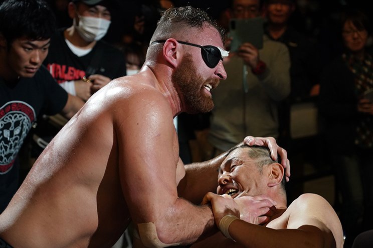 「キング・オブ・プロレス」「キング・オブ・デスマッチ」は誰か決着をつけるべく戦う鈴木みのるとジョン・モクスリー。