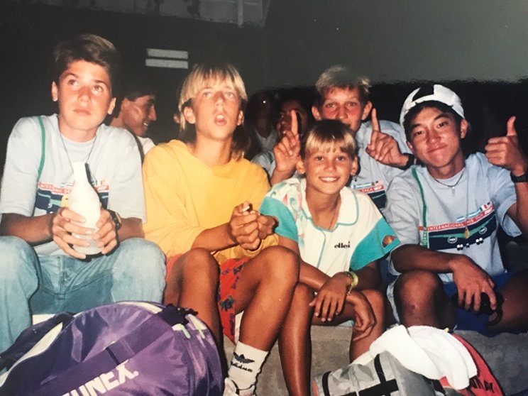 かくしてコーチや選手間の評価を上げた坂本は、トップガンにも昇格し、クルニコワの指南係をボロテリー直々に指名されるまでの信頼も勝ち得ていく。坂本が属した当時のトップガンには、そのクルニコワをはじめ、後に世界2位に上り詰めるトミー・ハースや、今季から錦織圭のコーチに就任したマックス・ミルヌイらもいた(写真はトップガンの南米遠征時のもの。左端がハース、左から3人目がクルニコワ、その後ろがミルヌイ、右端が当時17歳の坂本氏)。