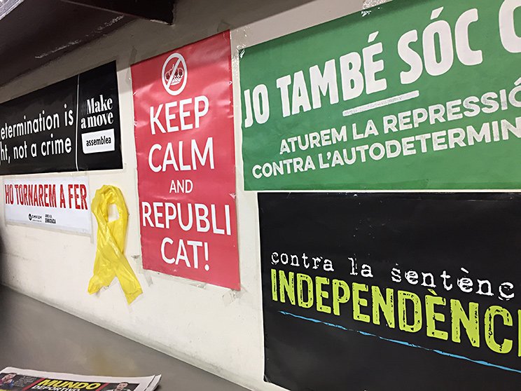 ただそれ以上に気になったのは、独立旗エステラーダや「SPAIN, SIT AND TALK」などと書かれた独立を訴えるポスターの数々だ。