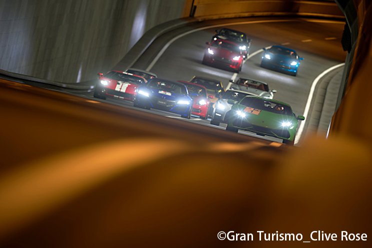 クライブ・ローズ氏が『グランツーリスモ SPORT』を撮影した1枚。バーチャルでこそ写せるアングルだ。