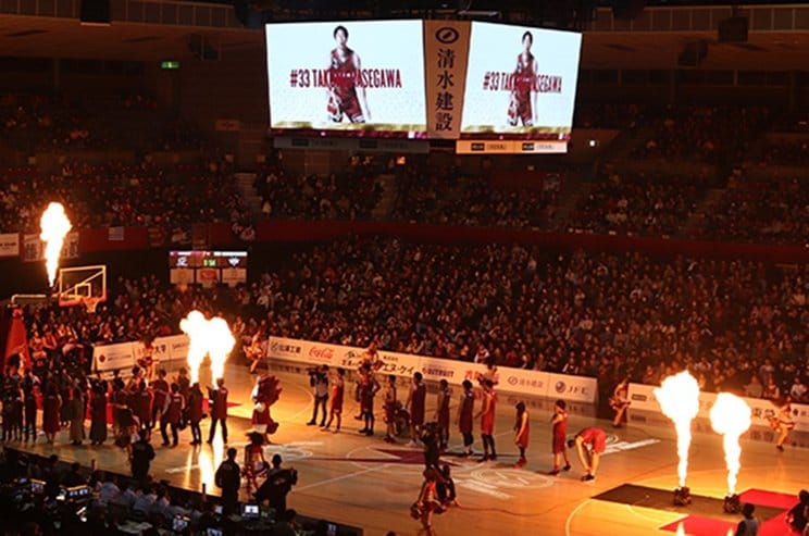 東岡がガッツポーズをしたのは、ホーム開幕戦である宇都宮ブレックスの試合だった。新調した7分間の演出の初お披露目だったにもかかわらず――。
