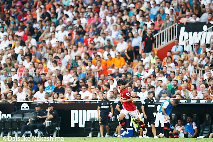 レアル・マドリーと契約を結び、マジョルカへと期限付き移籍した久保。2019年9月1日のアウェイ・バレンシア戦でデビューを飾る。ピッチに入った瞬間の表情が凛々しかった。