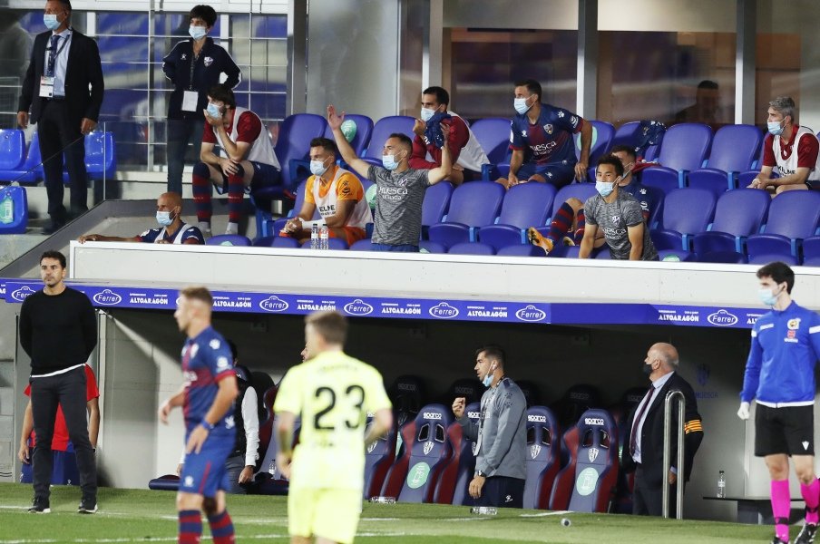 後半途中に交代となった岡崎。ここでも新型コロナウイルス感染予防の観点からベンチではなく、観客席のベンチに座る様式となっている。その中で最終盤、アトレティコの攻勢をウエスカが必死に耐え凌ぐ様子に、チームメートとともに思わず立ち上がる場面もあった。