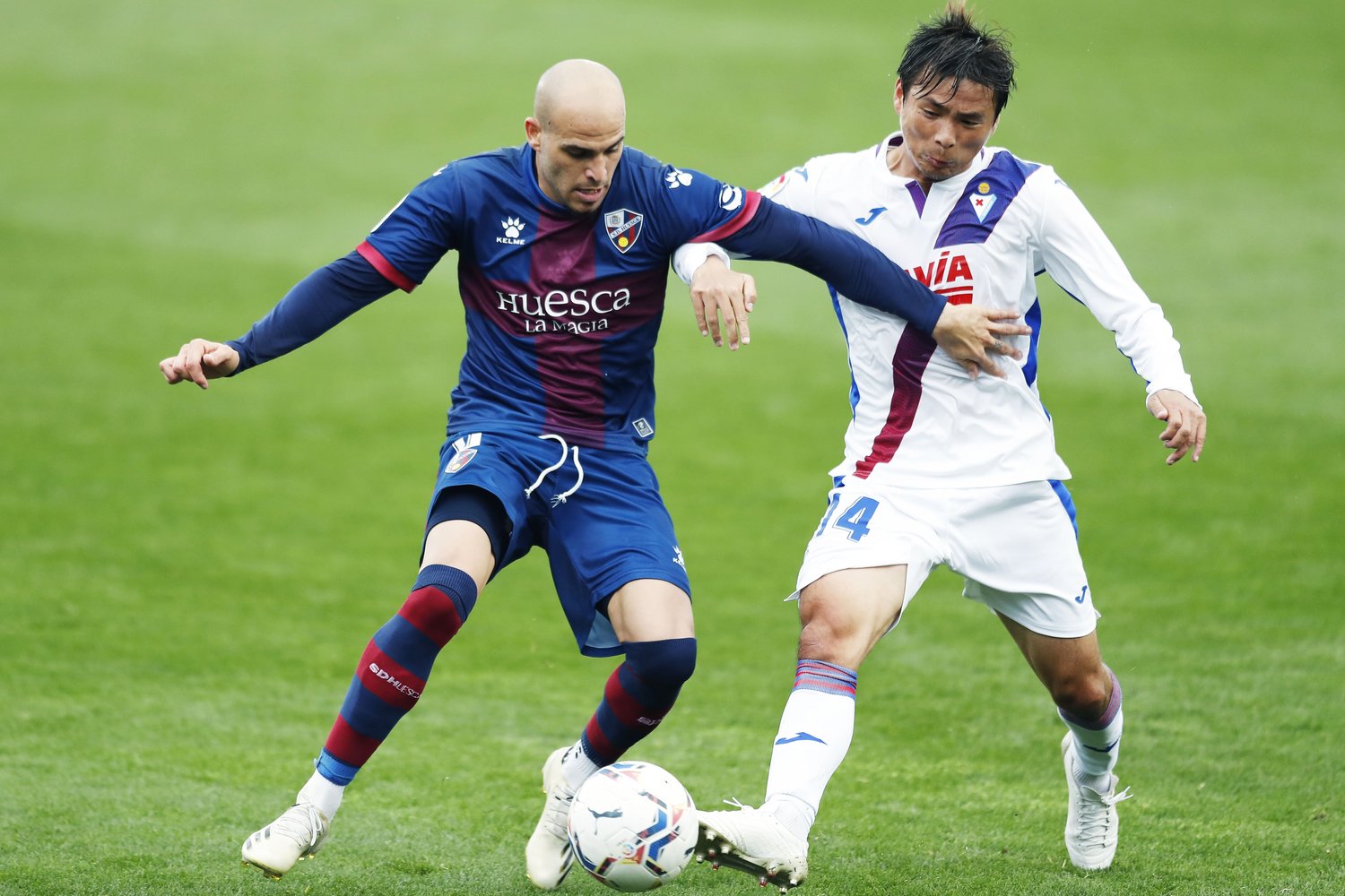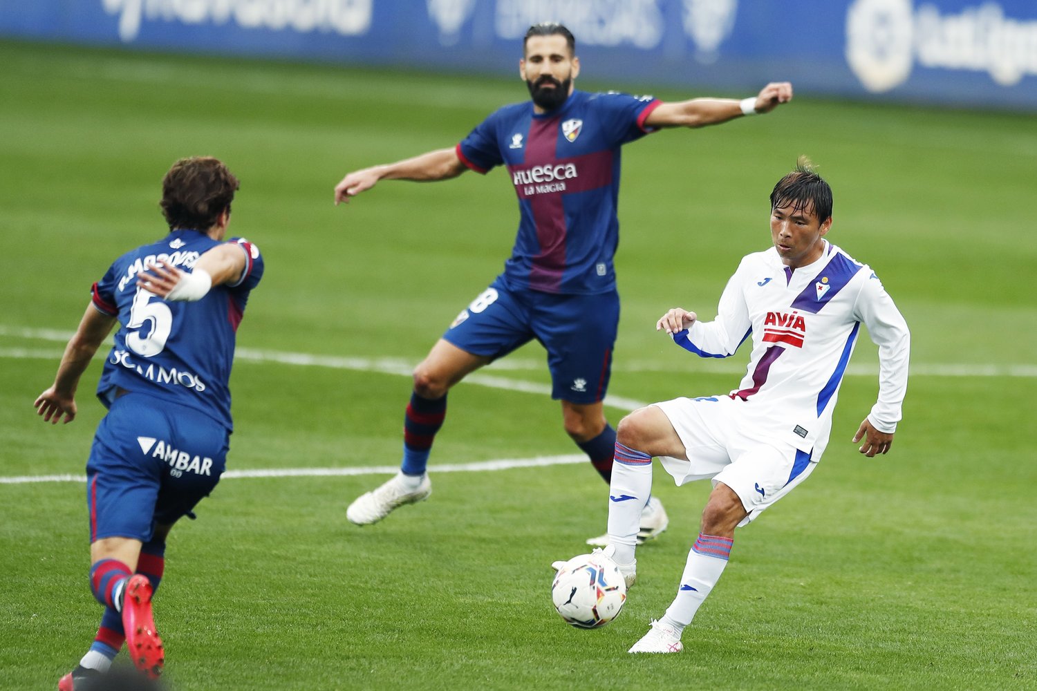 リーガ初の日本人3選手の共演も期待されたこの試合だったが、スターティングメンバーはエイバルの乾のみだった。今シーズン未勝利のウエスカは、キックオフ前にサブメンバー、ベンチ外の岡崎やスタッフなど全メンバーで気合の円陣を組んでいた。