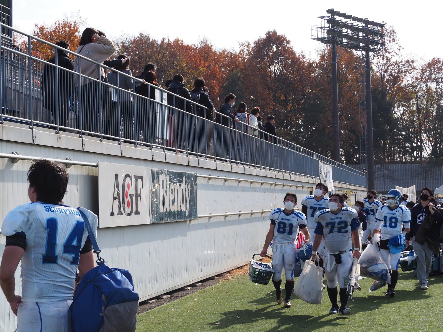 今まで見えない敵だった存在がそこに現れ、対策が見えた。ハーフタイムには相手のパント処理(蹴って相手陣方向にボールを移動させること)が甘いことをチームで共有。後半第3クォーターには4年のDB中村幸大が蹴り出したパントを身体で受け止めキャッチし、そのままタッチダウン。これがチームにとって今季唯一のタッチダウンとなった。スコアは10-19、スコーピオンズにとって今季、最初で最後の試合を黒星で終えた。