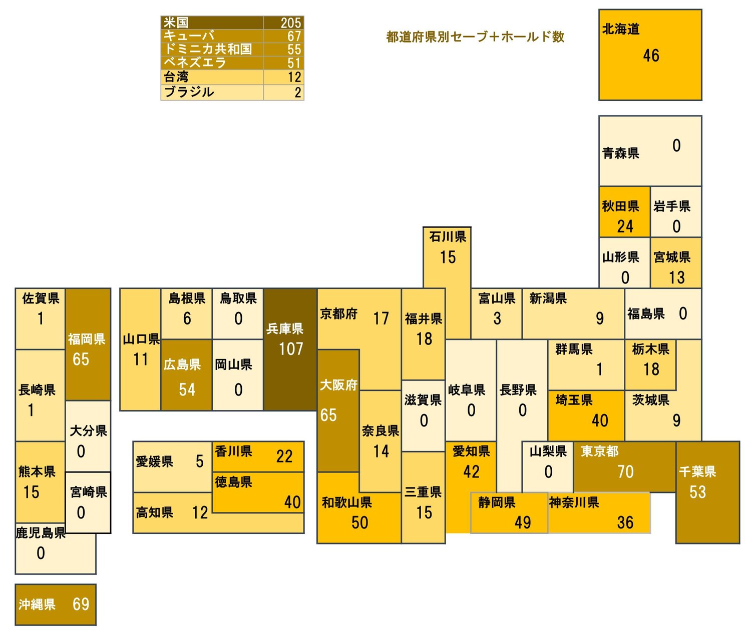 プロ野球投手の出身地別セーブ+ホールド数(2020年)を日本地図にすると… 国内に限れば1位兵庫、2位東京だが