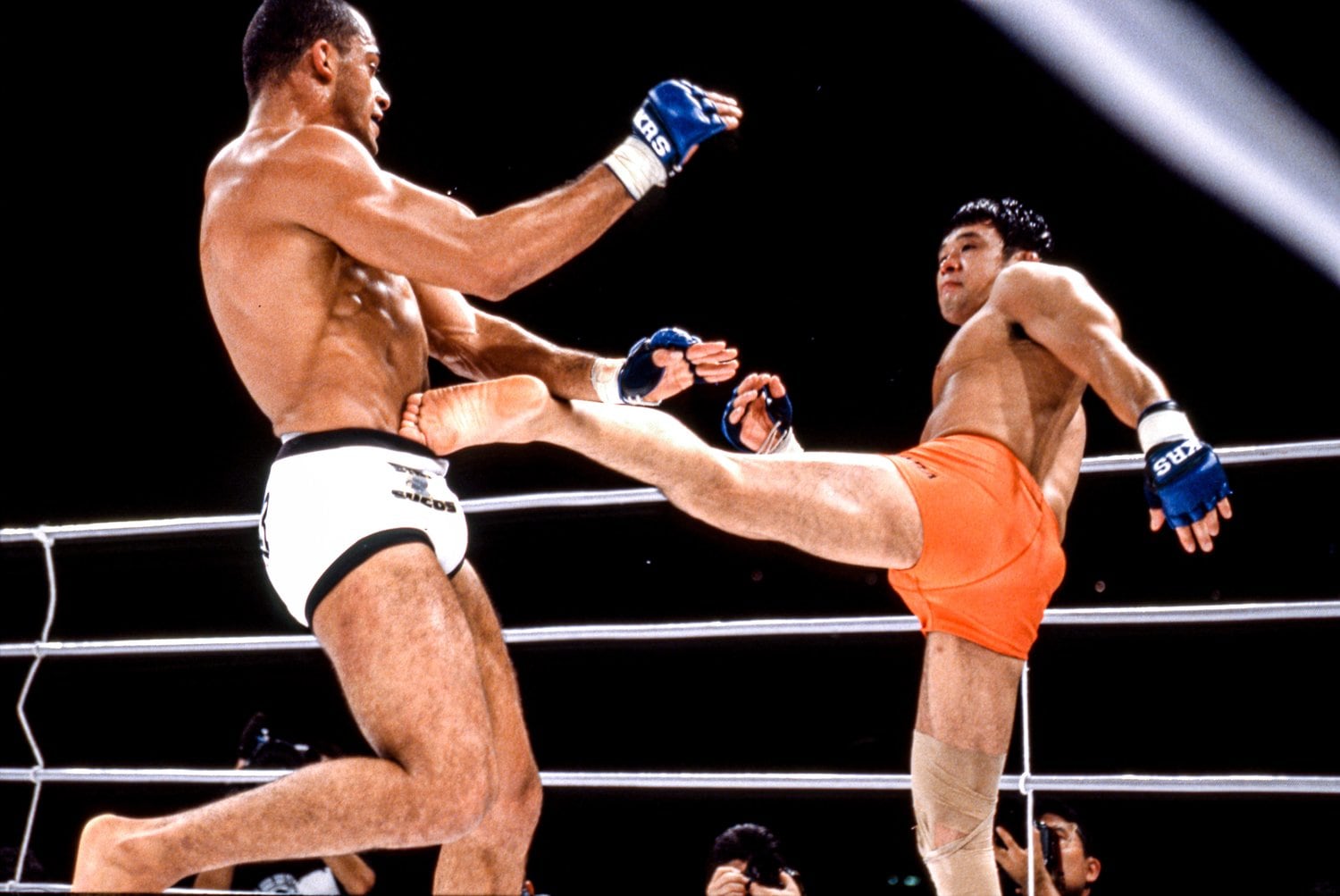 MMAとして初めて東京ドームで行われたRRIDE.1のメインイベントに出場した高田延彦(左)とヒクソン