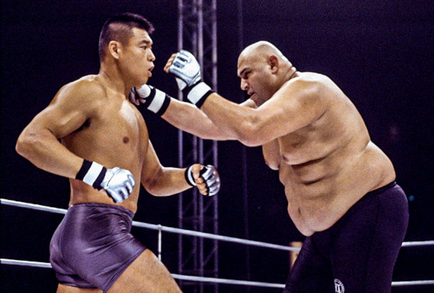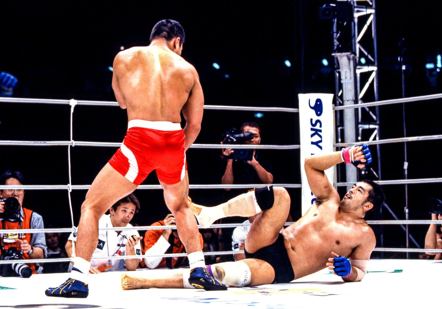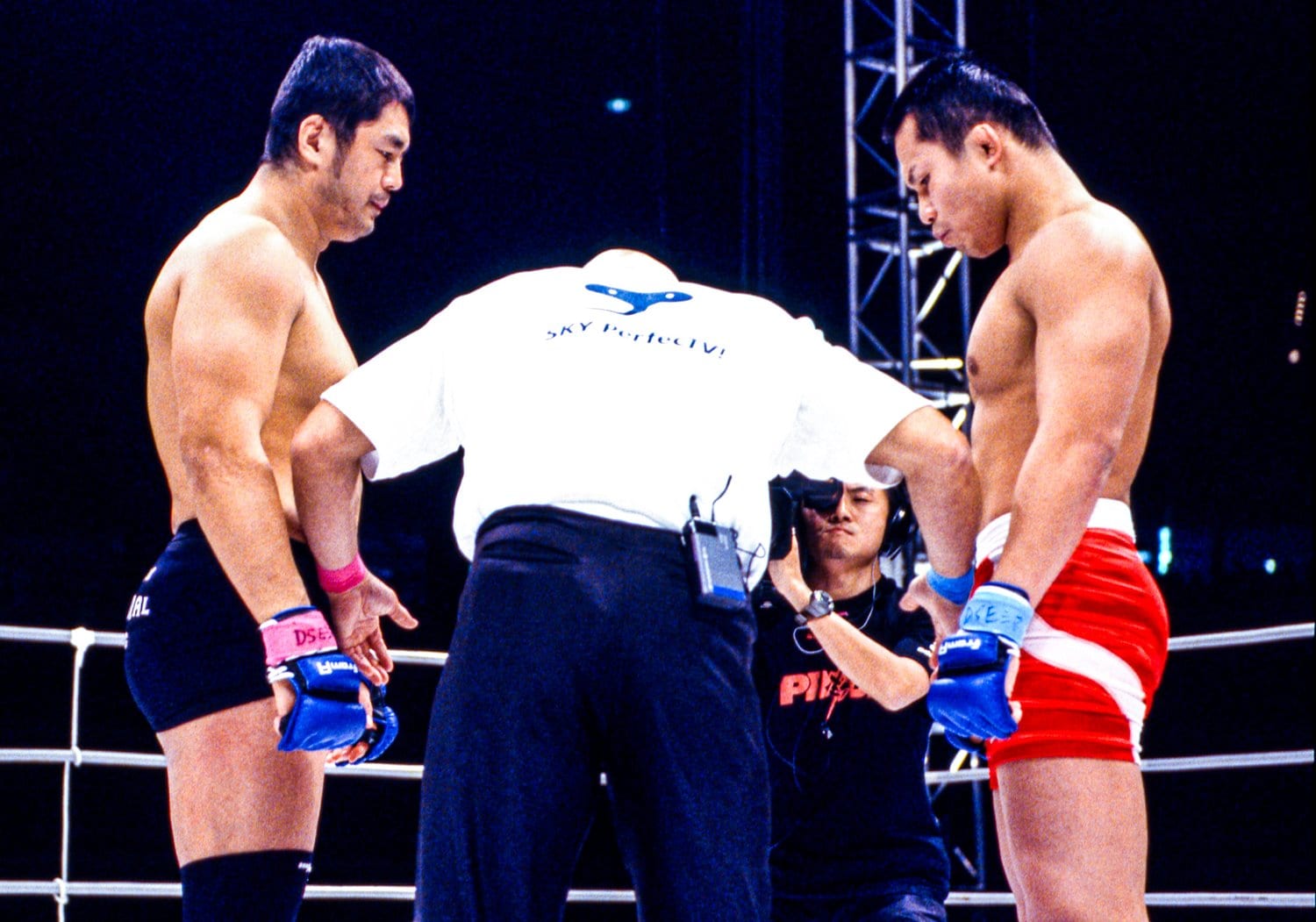 MMAとして初めて東京ドームで行われたRRIDE.1のメインイベントに出場した高田延彦(左)とヒクソン
