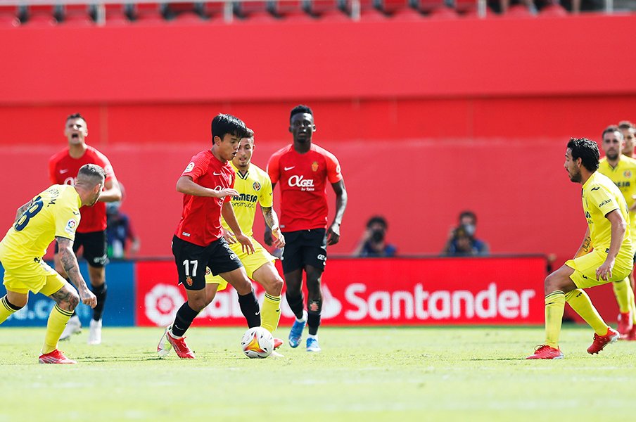 昨季所属したビジャレアルと戦った久保建英。エストゥピニャンの激しいマッチアップ