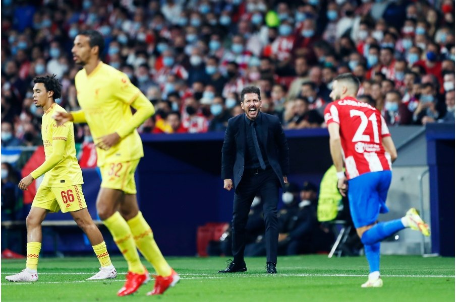 レフリーに注文をつけるシメオネ監督。クロップ監督との丁々発止のやり合いにも名将感が漂っていた