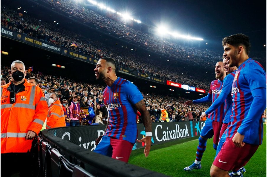 後半に入った直後、17歳でスペイン代表にも定着したガビが、相手DFに囲まれた狭いエリアからスルーパス。走り込んだメンフィスがDFとGKに接触しPKを獲得しました。自らがシュートを決め、雄叫びをあげながらこちらに向かってきました。