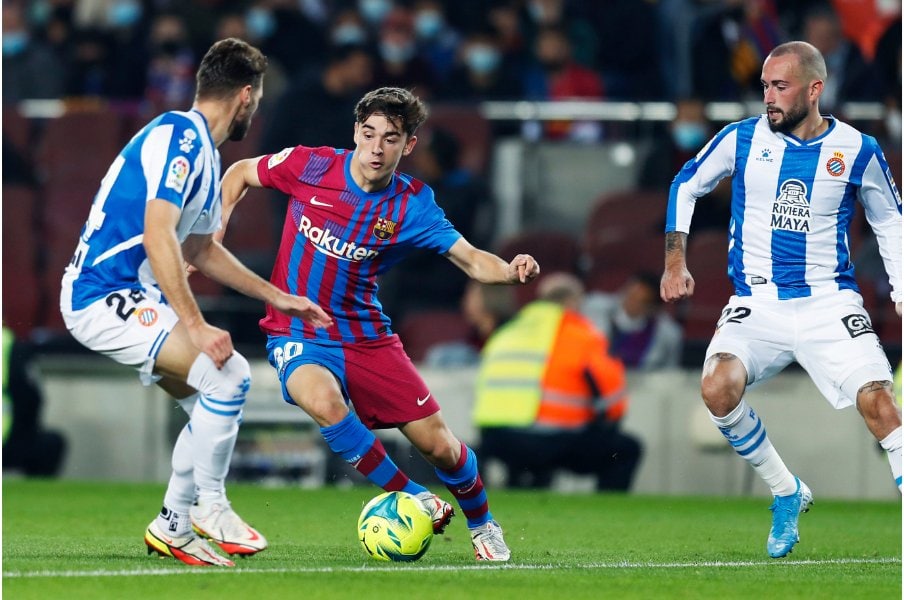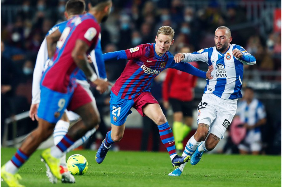 1点リードを奪った後もニコ、デヨングと若い選手が中盤で激しいマークを受けつつ優勢に進めます。エスパニョールの最終ラインまでプレッシャーをかけて、相手陣内に押し込める意図が見られました。