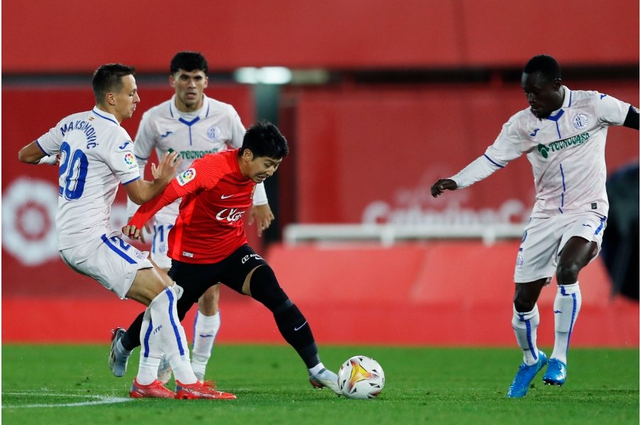 後半に入っても、お互いなかなかボールを保持する時間を作り出せない展開の中、マジョルカのイ・ガンインは体を張ったプレーでボールを収めようとします。