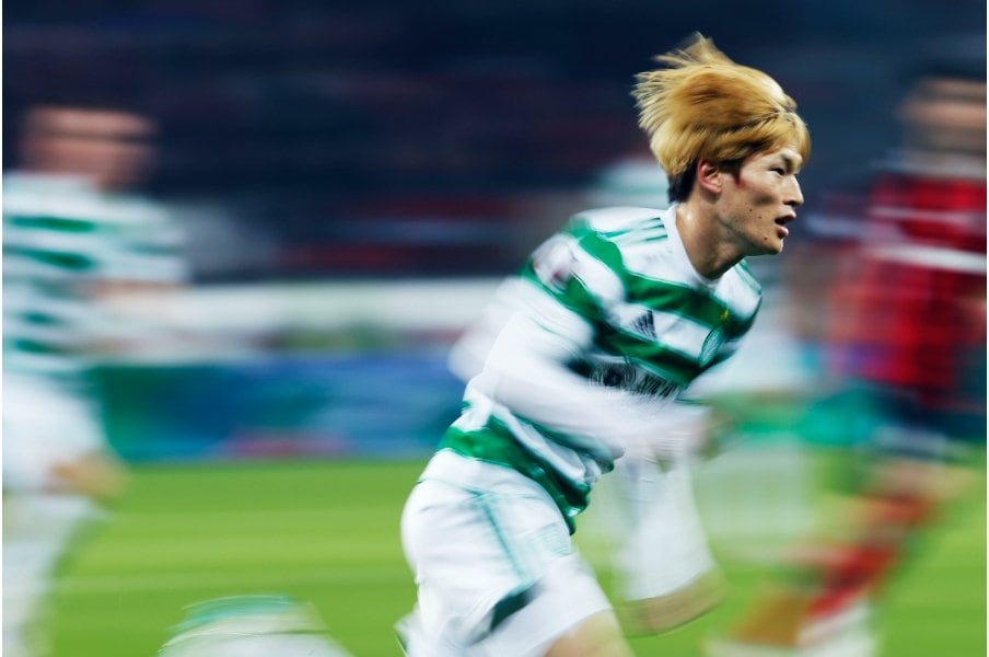 古橋亨梧のスパイクに「日の丸とKyogo」 セルティックでの絶好調ぶりを撮って体感した“スピードと日本代表での期待”