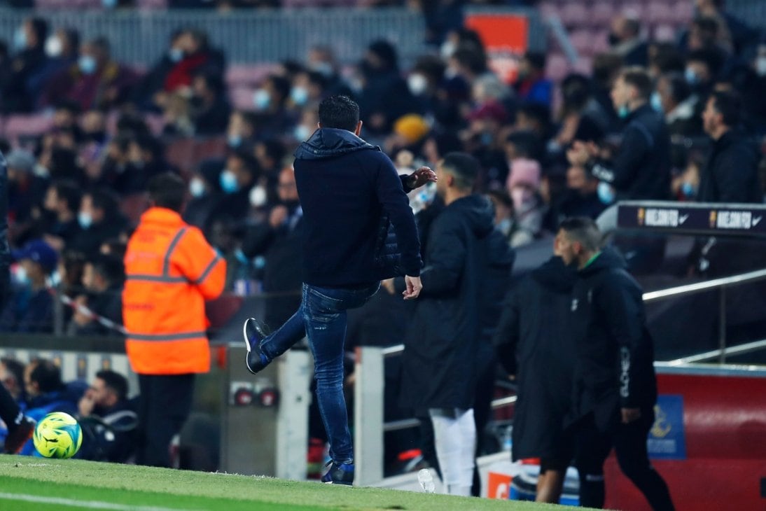 そんな中、エルチェ陣内でのエルチェのスローインの際に、バルサが前線からプレスをかけたものの、逆サイドまでボールを展開されてしまうと、シャビは足元のペットボトルを蹴り飛ばして怒ります。シャビが選手に求めているものの一端が垣間見れたような気がします。