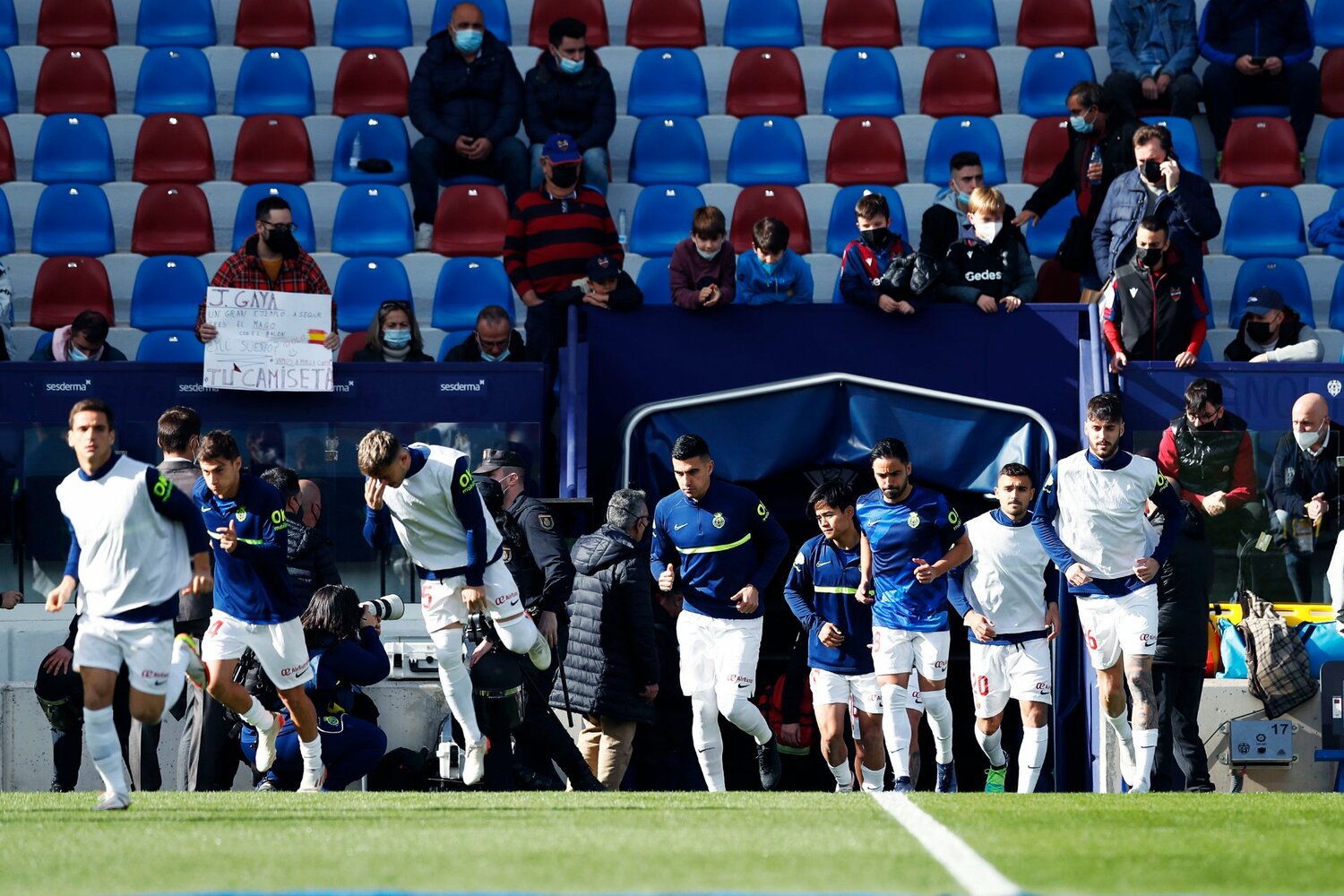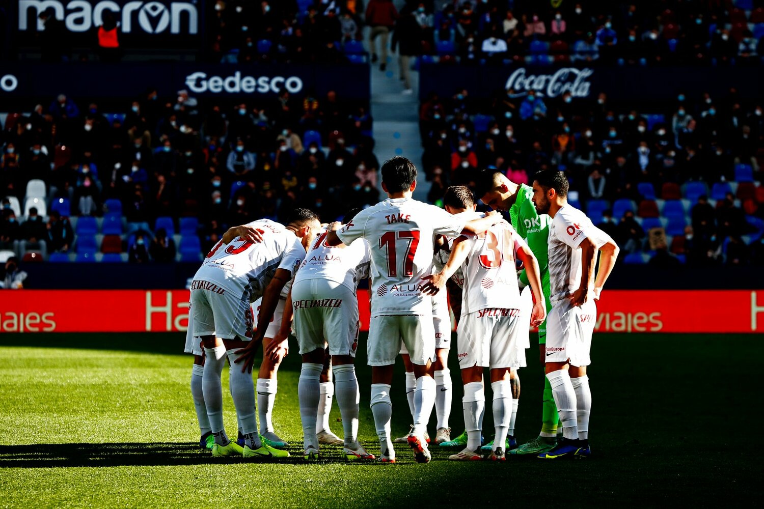 ホームでマジョルカを迎え撃ったレバンテは、19節終了時点でまだ勝ち星のない最下位チーム。そのためか、是が非でもサポーターの前で今季初勝利を! という気合が伝わってくるアップの雰囲気でした。