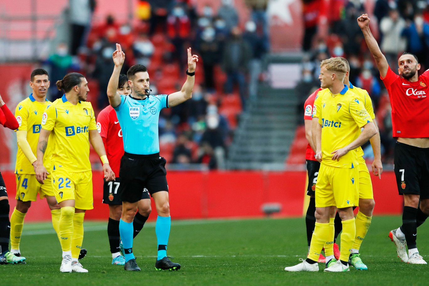 GKのレデスマにカードが出されましたが、写真からはハロヤンのプッシングが原因のように見えます。