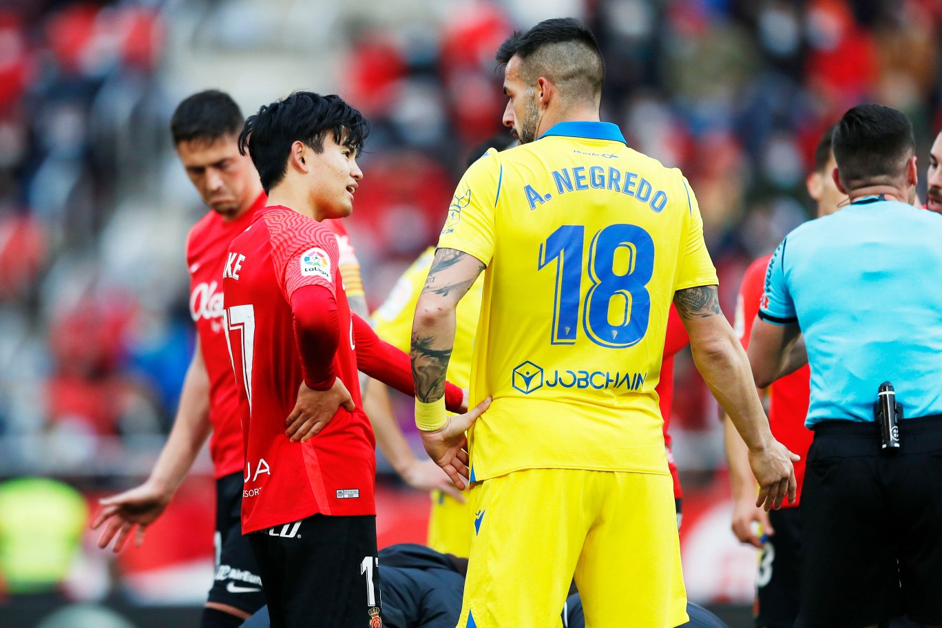 このPKをムリキがゴール。マジョルカでの初得点でチームを勝利に導きました。PKの前には、強面の元スペイン代表FWネグレドとジャッジについて言葉を交わし、またPKのキッカーになったムリキにも声をかけるなど、久保のコミュニケーション力の高さも見られました。