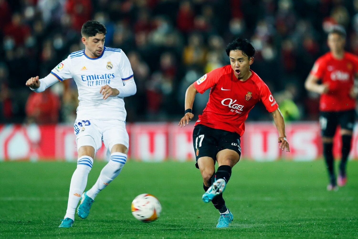 さらにマジョルカは細かいパス回しから、久保が縦に抜け出しますが、ここはカゼミーロにうまく対処されました。