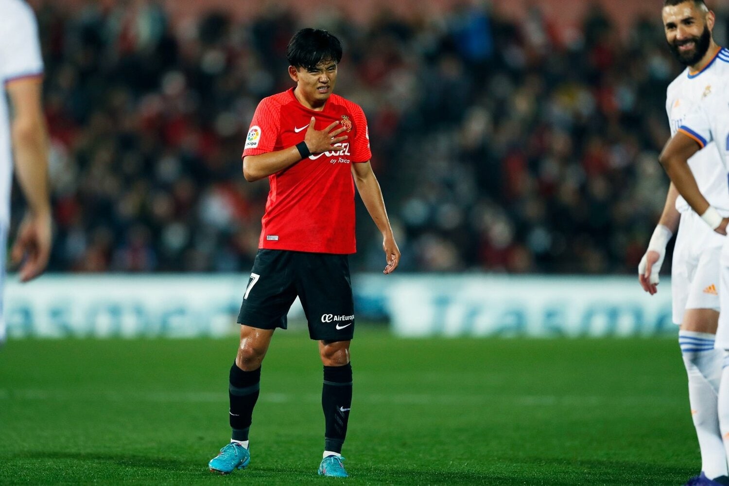 マドリーがマジョルカ陣内で攻勢をかけた際には、久保も自陣まで戻って守備に追われました。球際の競り合いでロドリゴがかなり激しく久保に迫ったシーンでは、ベンゼマが久保のもとに駆け寄る姿が見られました。