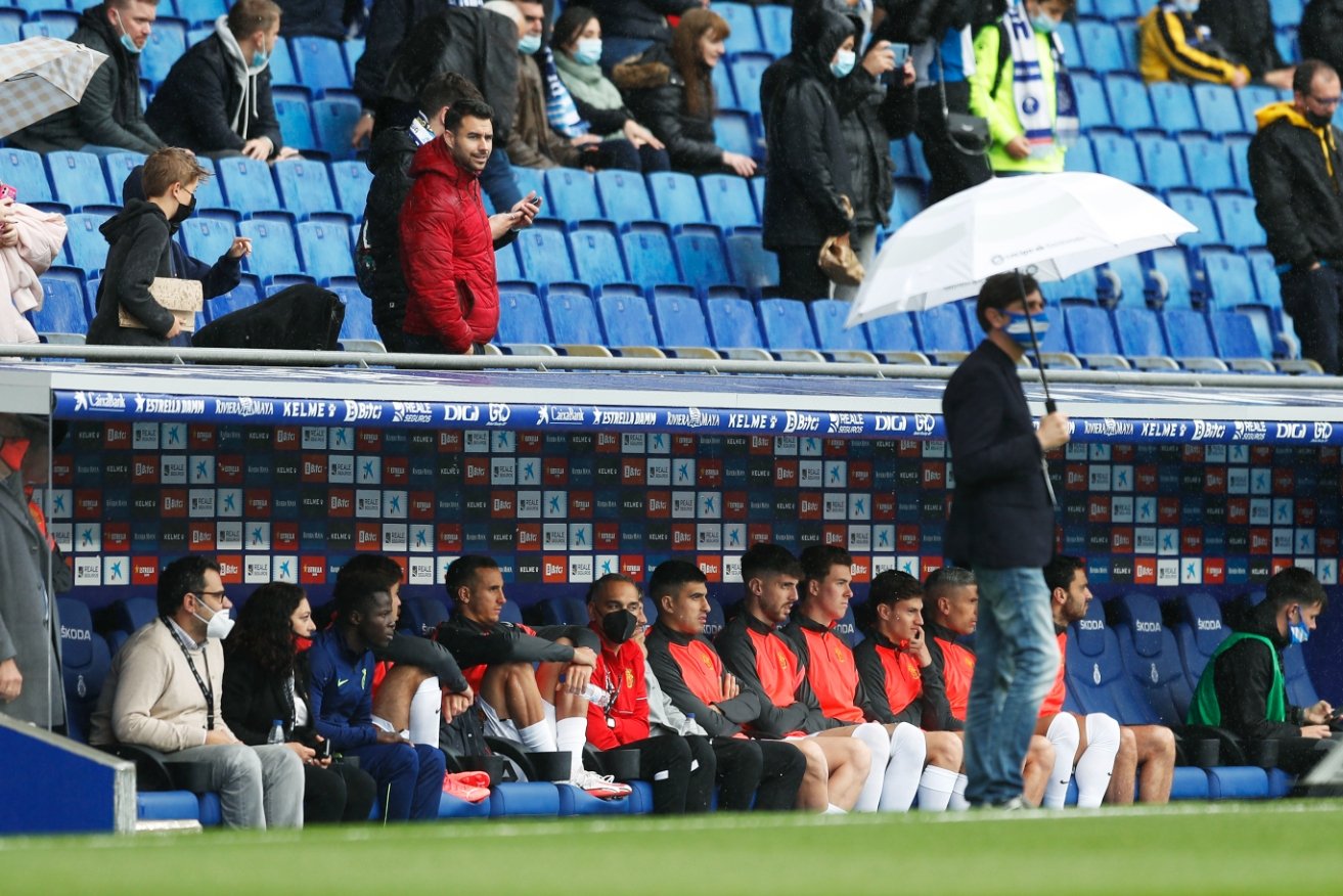 控えとなった久保をベンチで撮影すると、ひさしからこぼれ落ちる雨を気にしているようでした。また、5連敗中のマジョルカ、ルイス・ガルシア監督は、カメラを見つけると笑みを浮かべて余裕の表情でした。