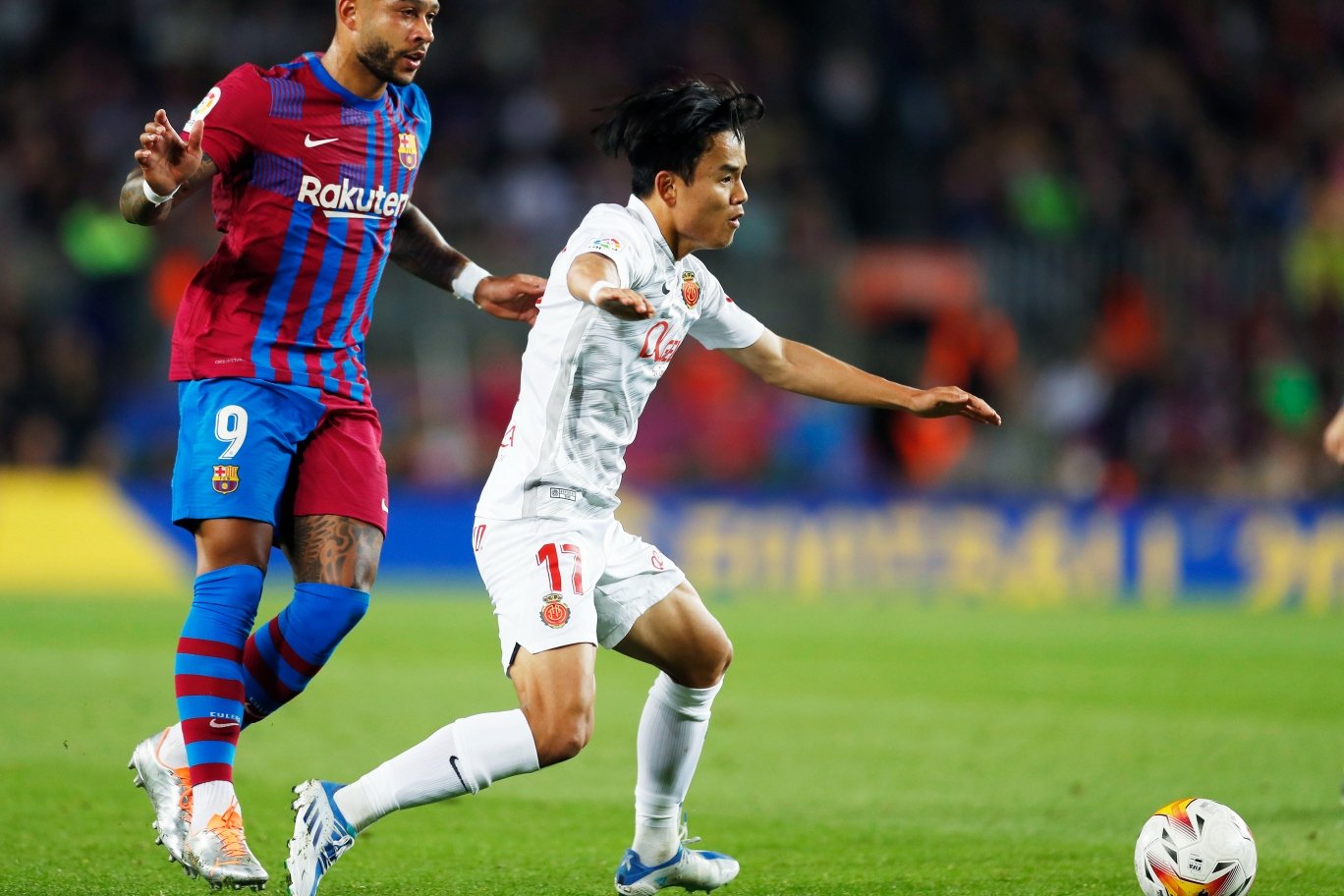 しかし、マジョルカも一度掴んだ光を簡単に手放すことはしない。イ・ガンインの個人技から、久保がボールを受けると、寄せるフレンキー・デヨングを横目にミドルレンジから強力なシュートを放つ。