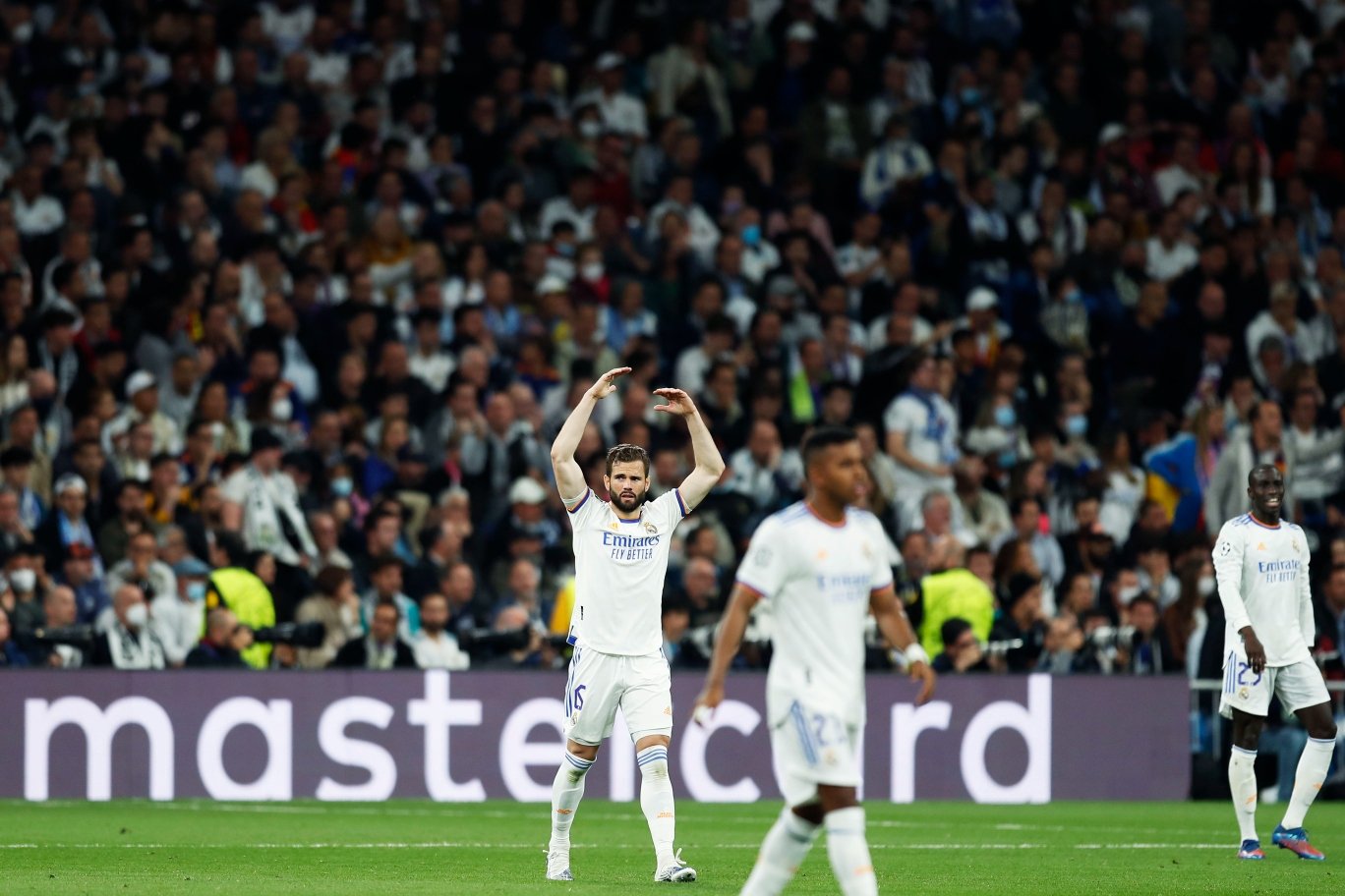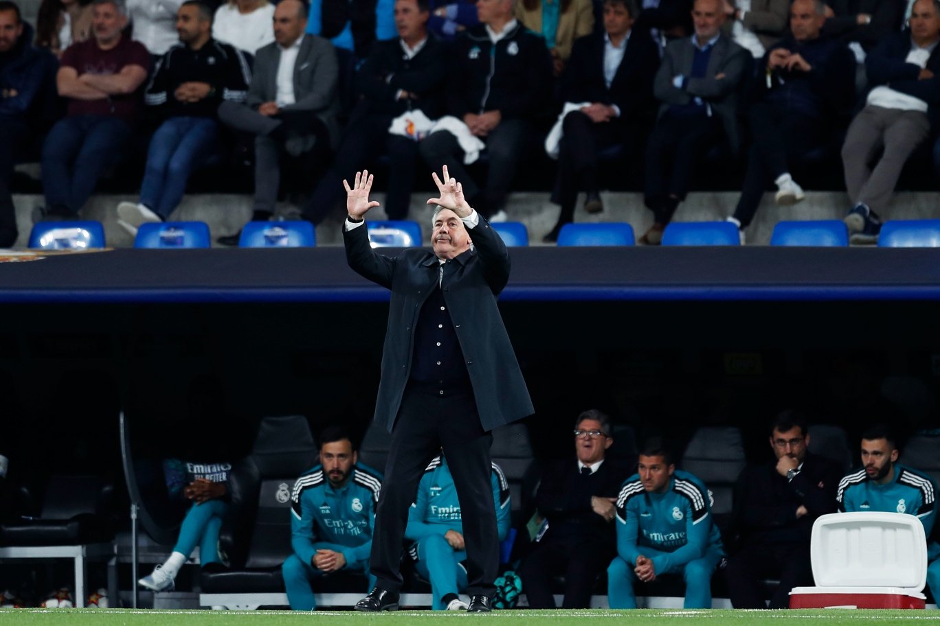 気を吐いたのが、マドリー下部組織からの生え抜きナチョ。選手だけでなく、スタジアム自体を鼓舞する。また直前の試合でリーガ優勝を決め、史上初の欧州5大リーグ全てでの優勝を成し遂げたアンチェロッティが右手で5、左手で3の指示を出す。サイドバック2枚を中盤に上げ、DFラインを2枚だけにする采配だった。