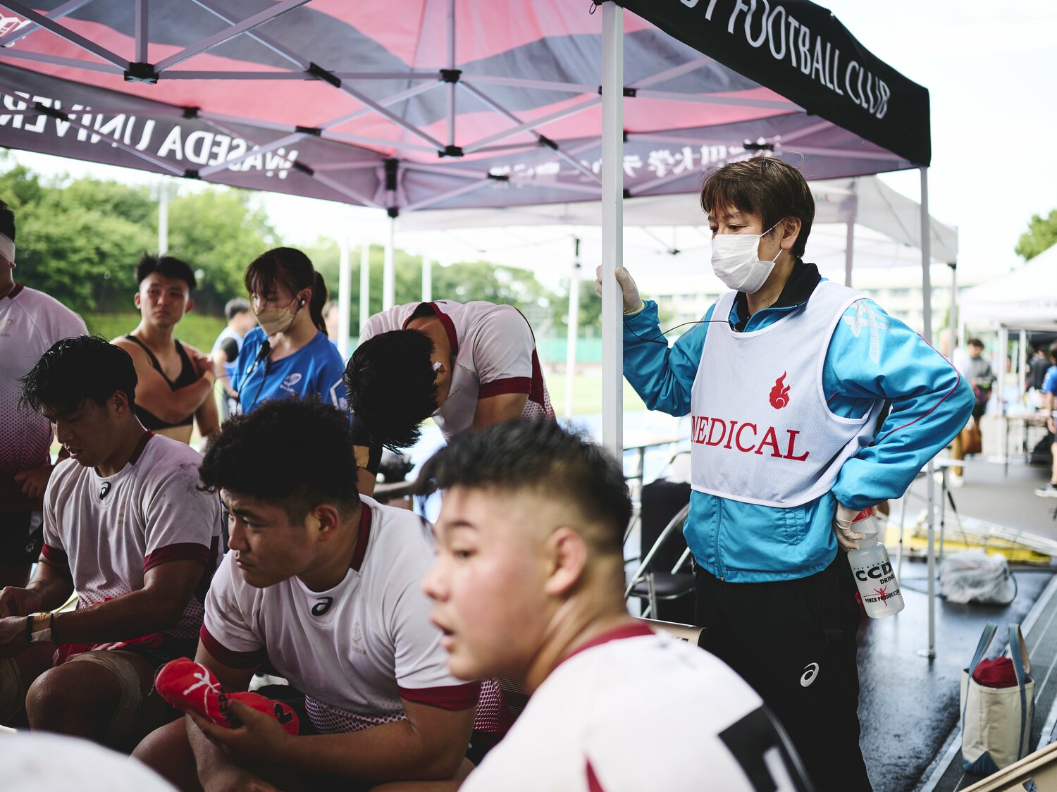 この日は午前11時からCチーム、午後3時からBチーム同士の練習試合があり、その間の午後1時から、Aチームによる関東大学春季大会公式戦が組まれるというトリプルヘッダー。そのため早大チームは、医師も鈴木医師ともう1人、普段はBチームを担当する山口重貴医師の2人体制で臨んでいた。