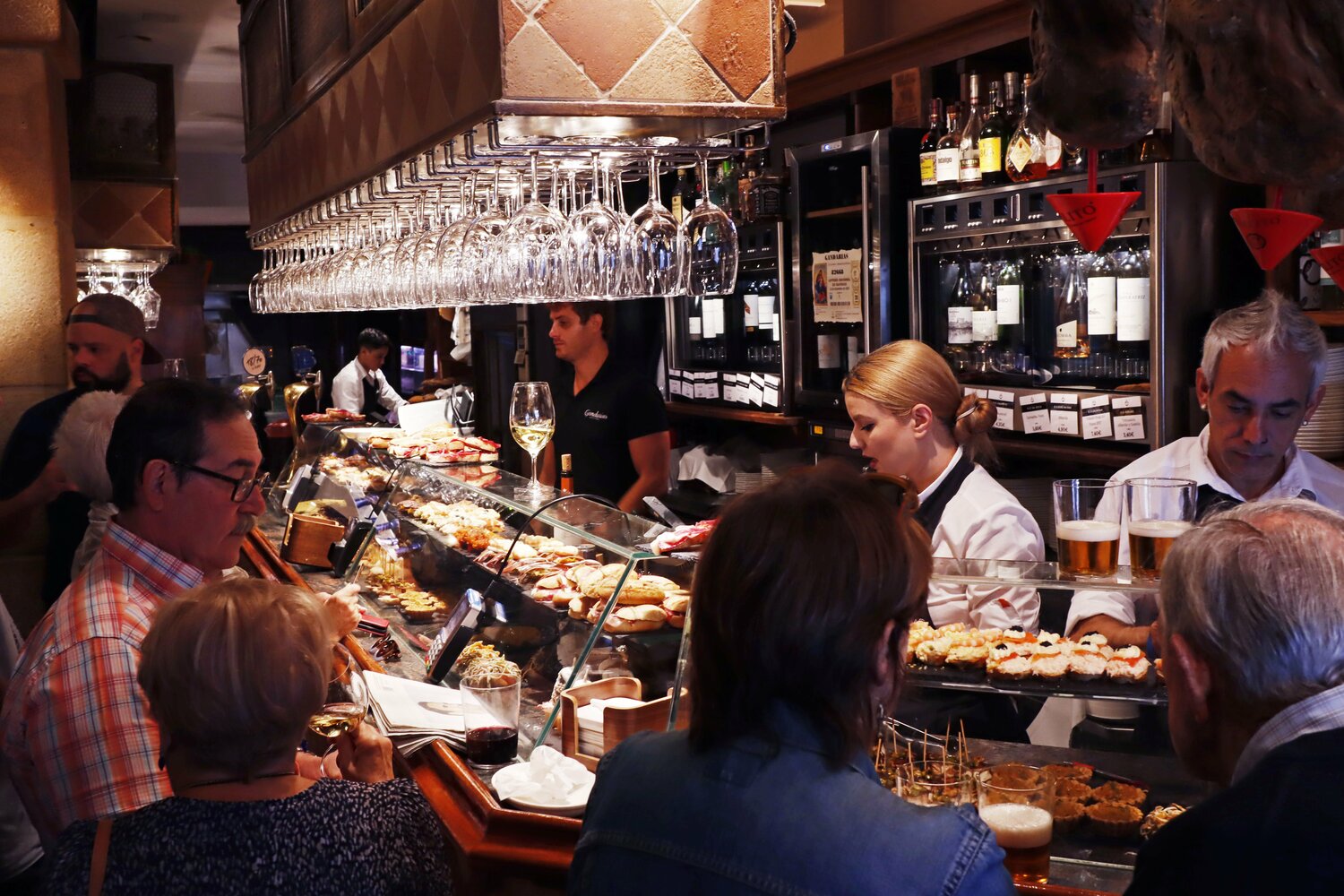 旧市街のグルメエリアもたくさんの人が溢れており、分け入ってカニ味噌のタルトとチャコリ(バスク産微発泡白ワイン)を頂いた。