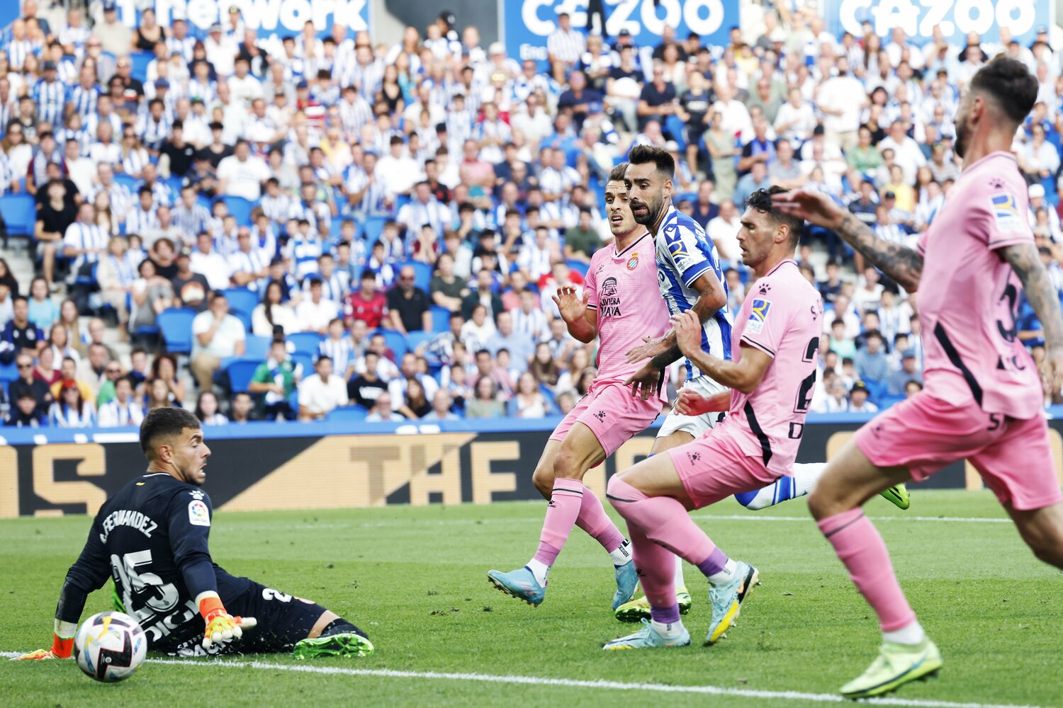 29分、エスパニョール陣内で、メリノがシルバ、スビメンディとともにプレスをかけてボールを奪い前進。右サイドからボックス内へ侵入するメンデスにショートバウンド気味の短いパスを送ると、メンデスは難なくワンタッチでコントロールする。これをGKの脇へボールを流し込み、勝ち越しに成功。