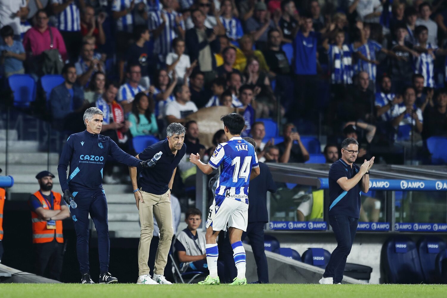 74分、シルバとセルロートが交代。その際には、久保がイマノルの元に駆け寄り指示を受けると、シルバに代わってトップ下のポジションについた。
