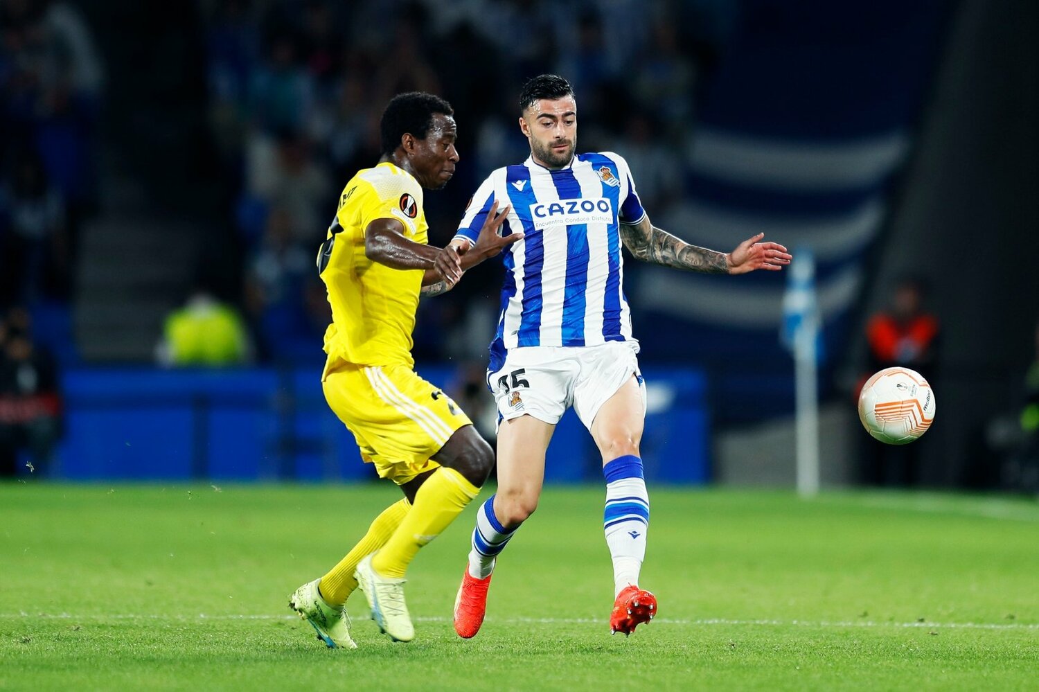 試合は、中盤をソシエダのレギュラー格であるダビド・シルバ、ブライス・メンデスに加えてゲバラ、ソシエダBから昇格した20歳トゥリエンテスが制し攻勢に出るが、5バックを敷くシェリフから、なかなかゴールを奪うことができずにいた。
