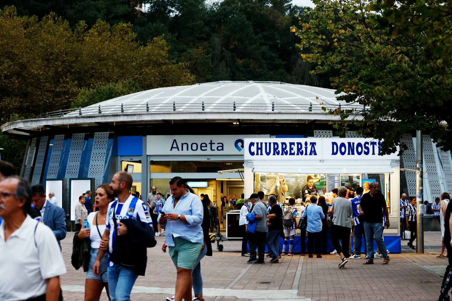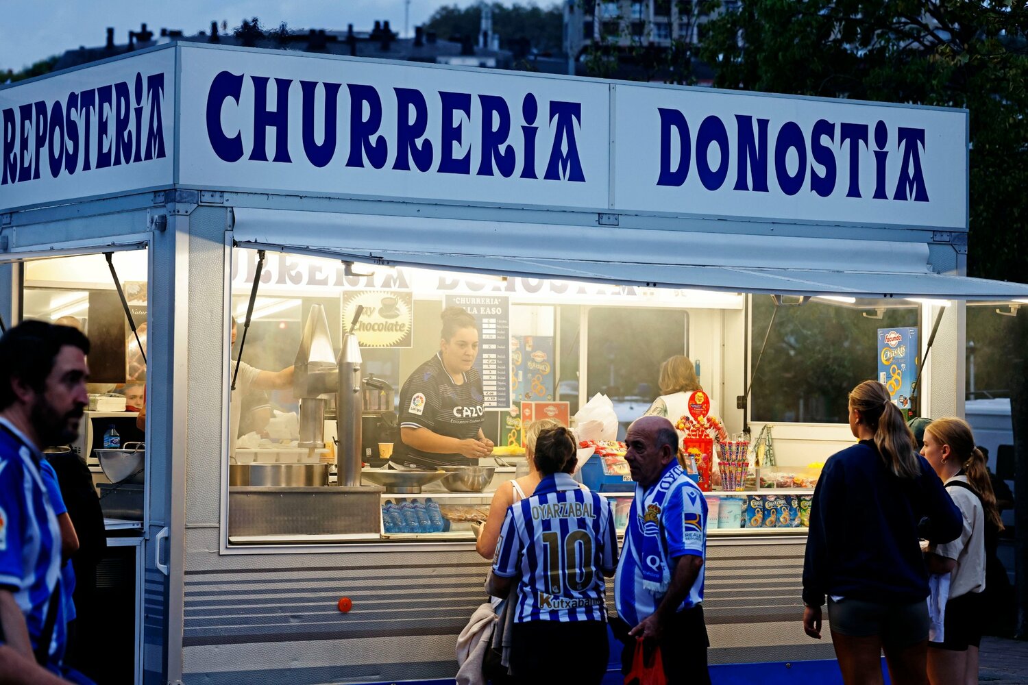 チュレリア(チュロス屋)から漂う香ばしい揚げたてチュロスとチョコレートの匂いが出迎えてくれる。スタジアムに隣接するアノエタ駅からたくさんのユニホーム姿のサポーターが闊歩する。チームの調子を表すように、集まったサポーターの姿は賑やかでにこやかだ。