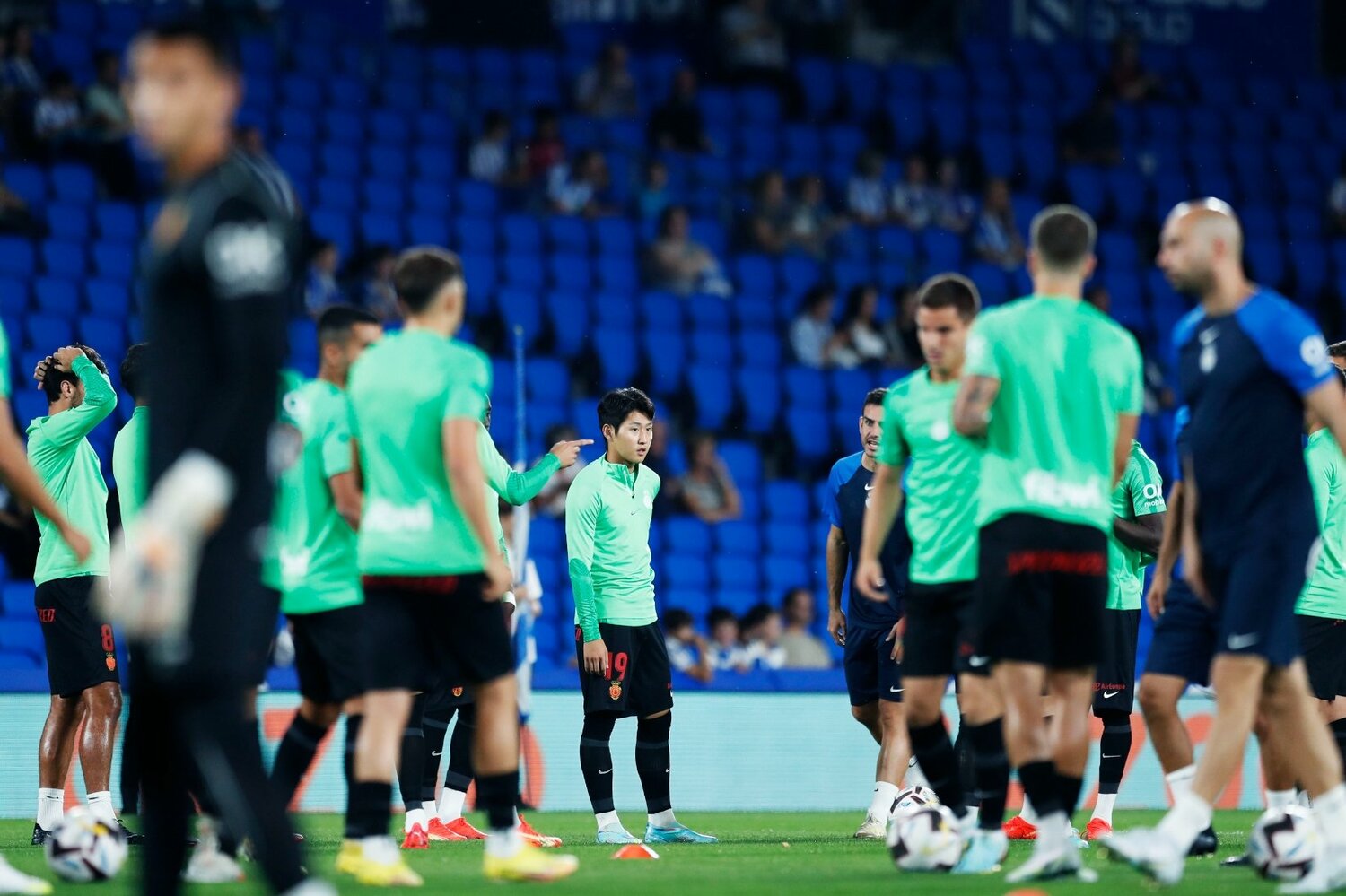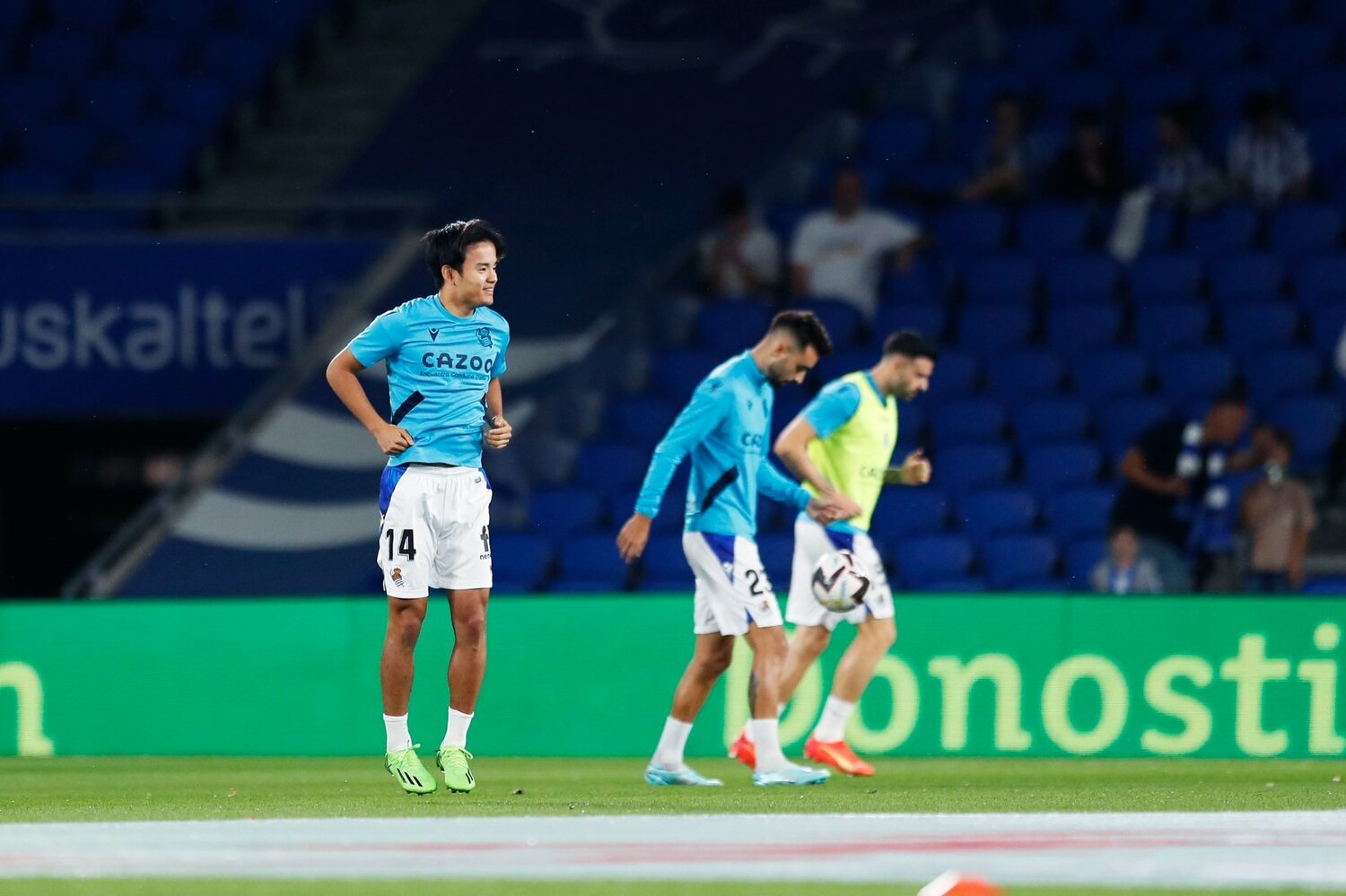 前節より中2日で迎えたこの試合でも、久保はスターティングイレブンに名を連ねた。アップのためピッチに姿を表すと、マジョルカチームの方へ視線を向け、笑顔を浮かべながらランニングを始めた。選手入場時には、にこやかに、そして目の奥には闘志を浮かべて元チームメイトと健闘を誓い合う姿が印象的だった。