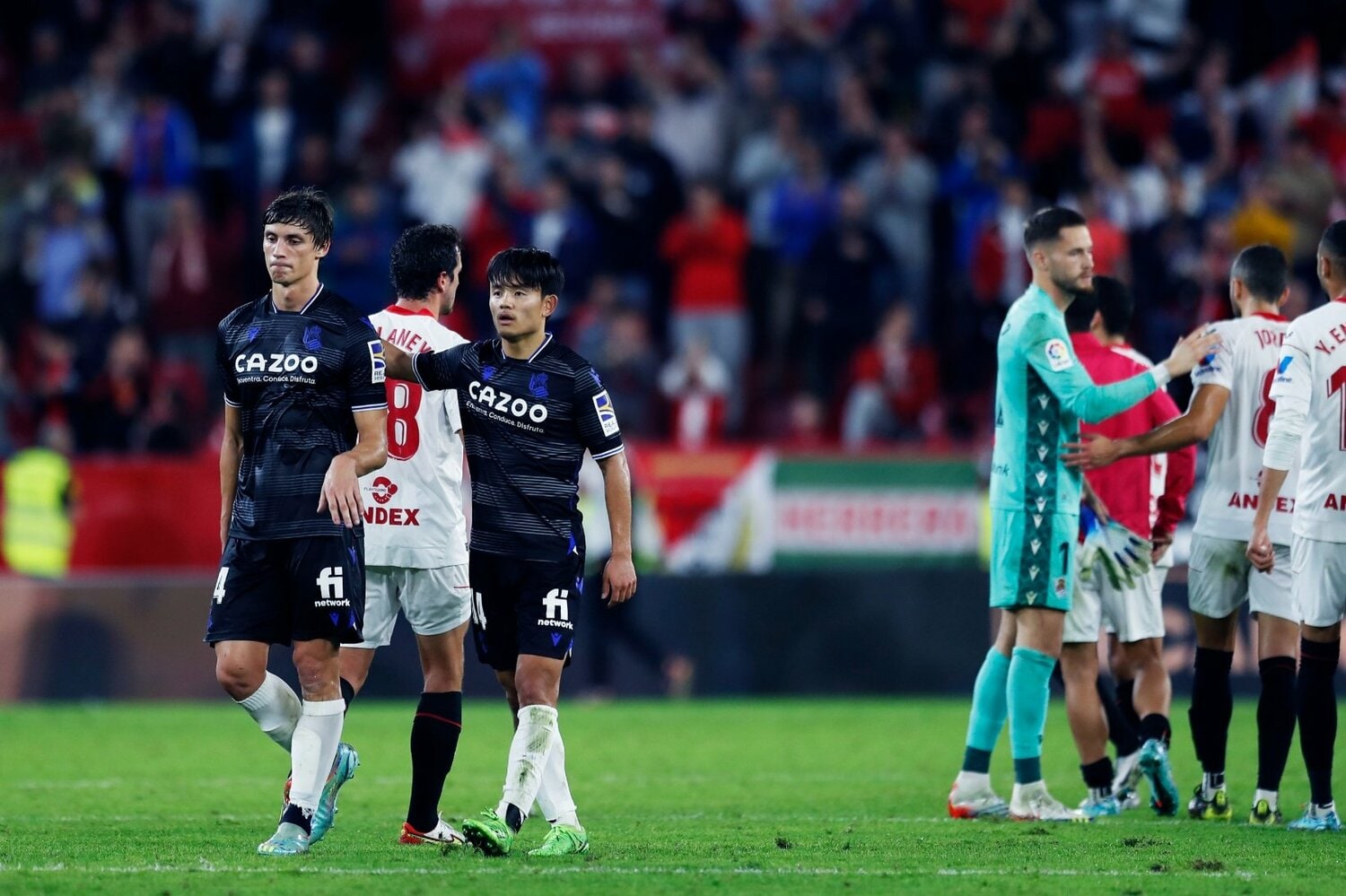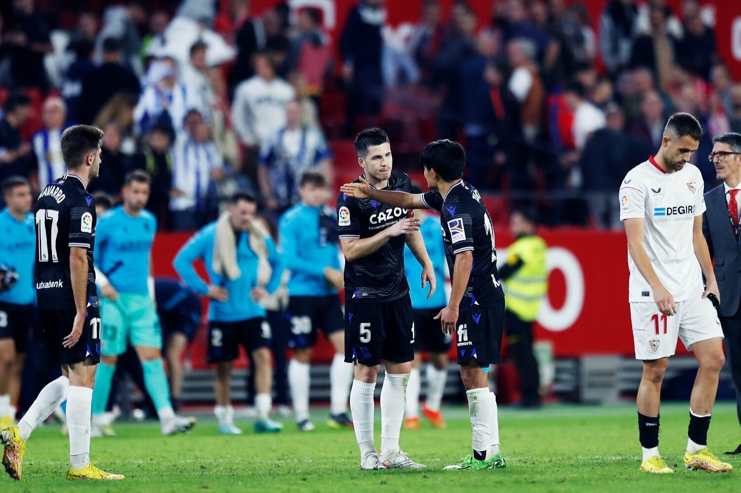 試合展開を振り返ると――自分たちのサッカーを捨て、守らざるを得なくなったセビージャと、数的優位の中でリードするソシエダがリスクを極端に避ける展開が続き、膠着状態に入った。