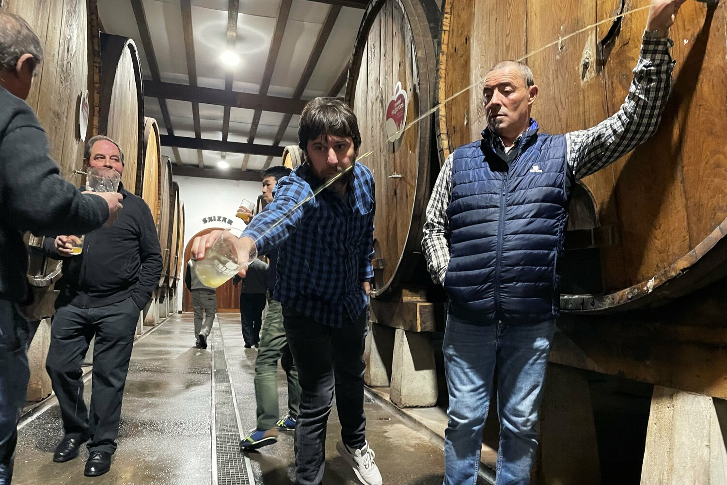 今バスクでは、シードラが旬を迎えている。シードラとは、リンゴを発酵させたお酒で、日本ではシードルと呼ばれるが、バスクシードラは、より酸味が強く、かなりの微炭酸が特徴的。たとえるとボジョレーヌーボーの解禁を祝うように、1月の第2週を過ぎたあたりに、初飲みが行われる。